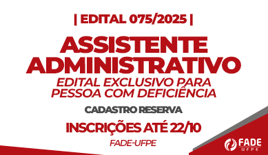 Assistente Administrativo (Exclusivo PCD) | Cadastro Reserva | Edital 075/2025 | Fade-UFPE