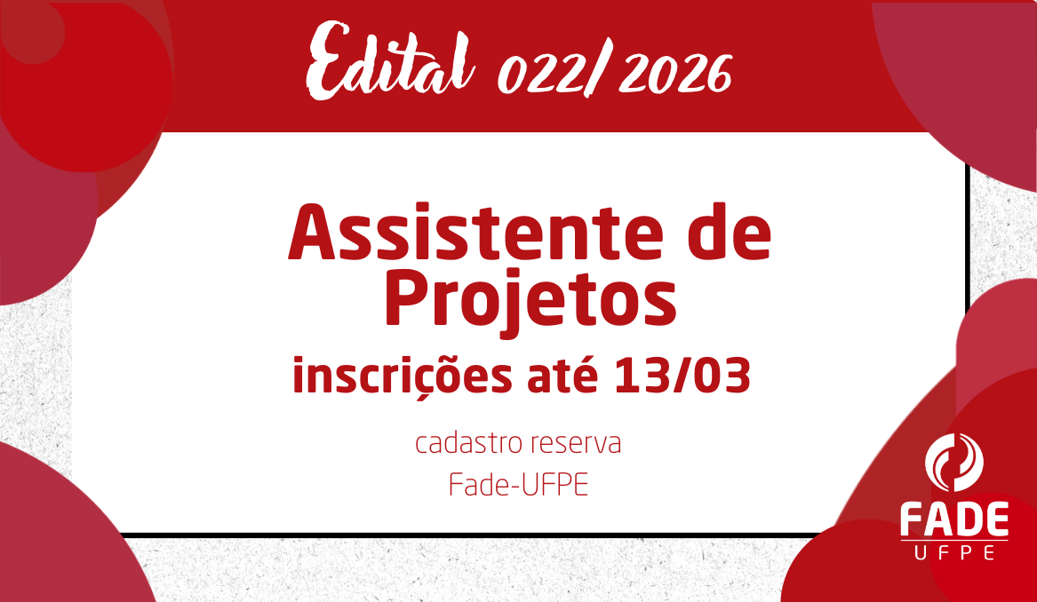 A Fade-UFPE torna público o seu edital de número 022/2026, para o cadastro de reserva de Assistente de Projetos, com inscrições até o dia 13 de março