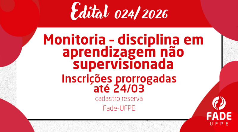 Read MoreA Fade-UFPE torna público o seu edital de número 024/2026, para o cadastro de reserva de Monitoria – disciplina em