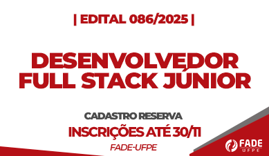 A Fade-UFPE torna público o seu edital de número 087/2025, para o cadastro de reserva de Desenvolvedor Full Stack Pleno,