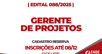 EditaisFinalizados Estágio em Administração | Cadastro Reserva | Edital 107/2021 | Fade Israel Vieira 4 de outubro de 20215 de maio de 2022 nenhum comentário Resultado Final 2ª Prorrogação de Cronograma Resultado 2ª Etapa Resultado 1ª Etapa Inscrições Download do Edital