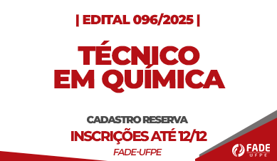 A Fade-UFPE torna público o seu edital de número 096/2025, para o cadastro de reserva de técnico em química, com inscrições até o dia 12 de dezembro.